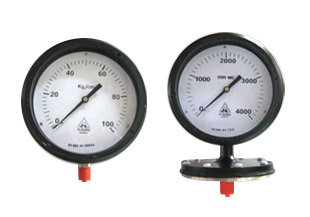 Pressure GaugesDiaphragm & Capsule Gauge, 100 & 150 mm, Spring steel/ Stainless Steel Diaphragm, Teflon, Silver foil (For chlorine), Stainless steel, Non ferrous/stainless Steel