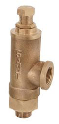 Bronze Pressure Relief ValveSpring Loaded, Angle Discharge, Screwed Male BSP Inlet, Screwed Female BSP Outlet, Suitable for Maximum
